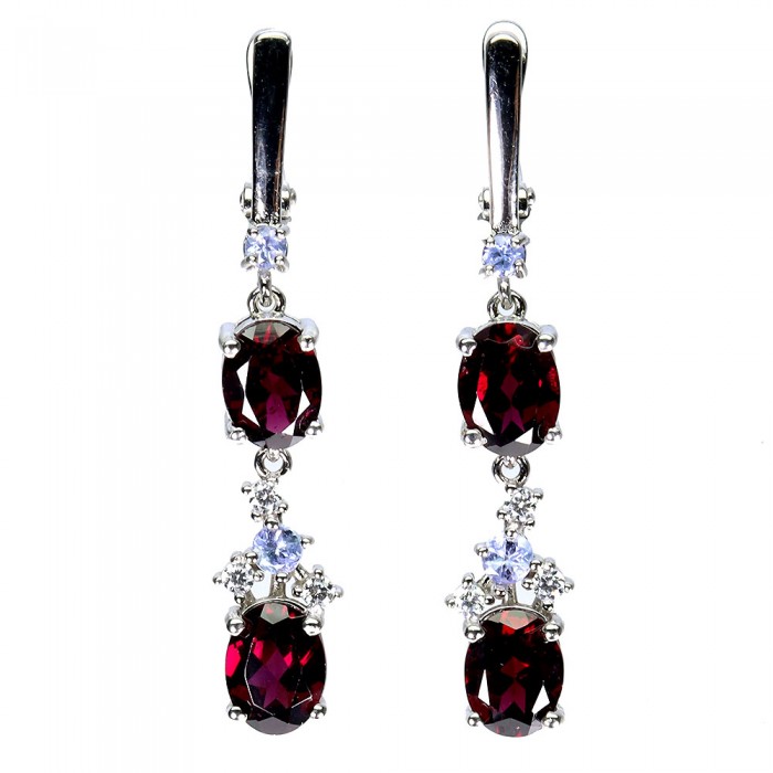 С5117Natural Tanzanite, Pearl, Rhodolite Garnet 44.0 X 13.0 MM.Вага 9.12 гр.Срібло 925 проби покрите білим золотом.Розмір каміння - 1.0 TO 2.0 MM., PEARL 6.0 TO 7.0 MM.Чистота - If To Vvs.Обробка - Unheated.Походження - Tanzania - Africa...