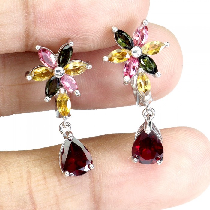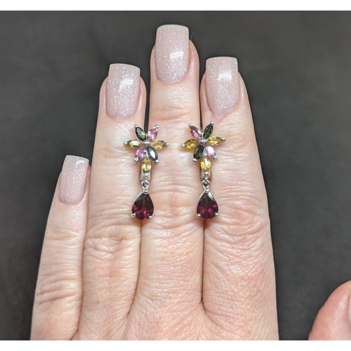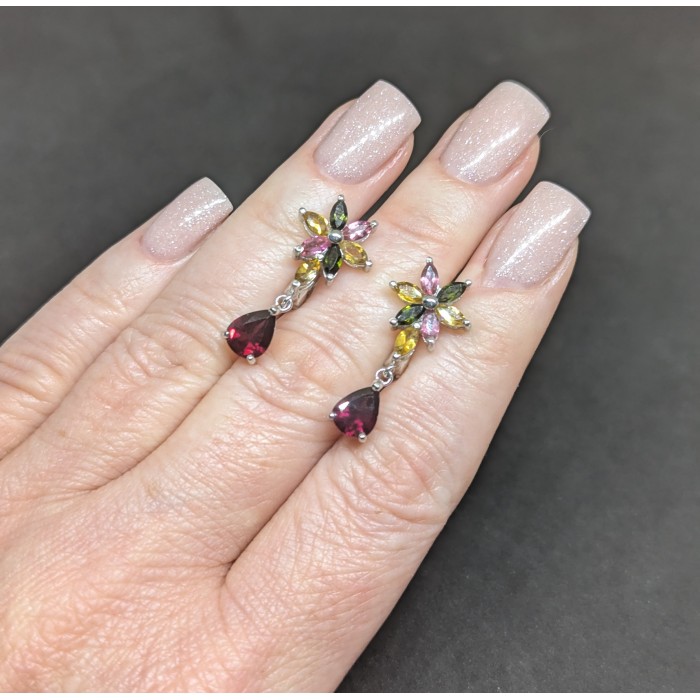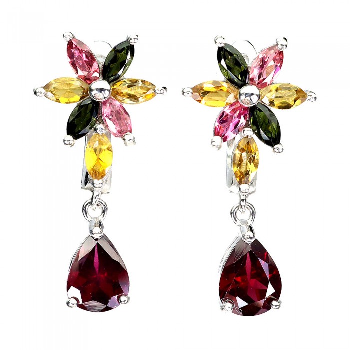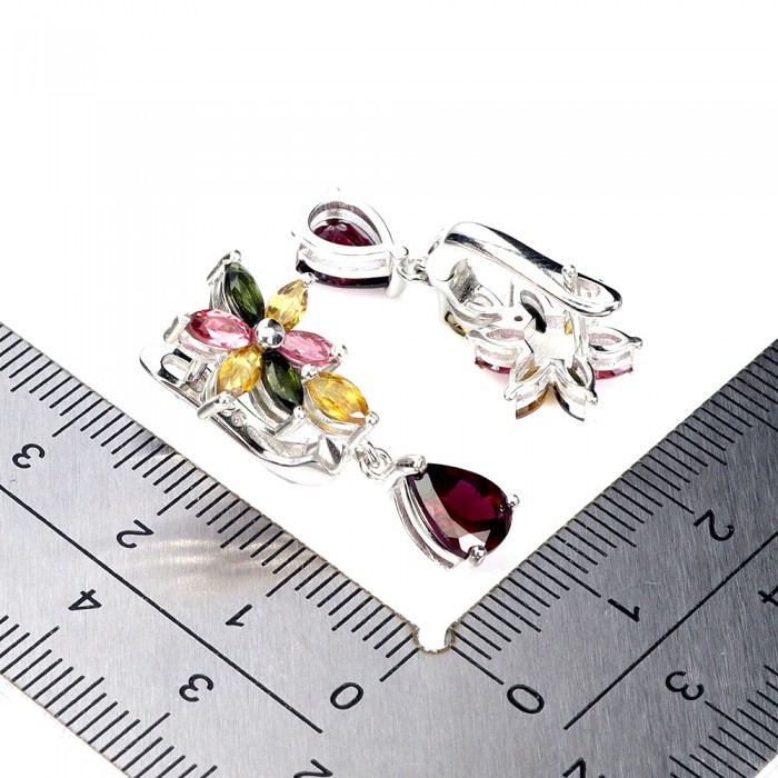 С5539Natural Mozambique Garnet 45.0 X 17.0 MM.Вага 4.69 гр.Срібло 925 проби покрите білим золотом.Розмір каміння - 3.0 TO 8.0 X 4.0 MM.Чистота - If To Vvs.Обробка - Unheated.Походження - Africa...