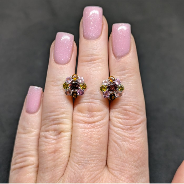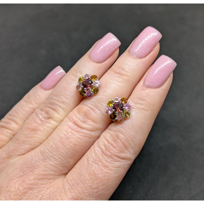 С9670Natural Tourmaline Sapphire 28.0 X 21.0 MM.Вага 5.28 гр.Срібло 925 проби покрите білим золотом.Розмір каміння - 2.0 TO 5.0 X 2.5 MM.Чистота - IF TO VVS.Обробка - UNHEATED.Походження - BRAZIL...