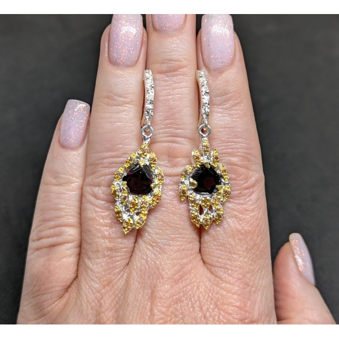 С3760Natural Pink Pearl, Amethyst & Garnet 8.2 X 32.0 mm.Вага 4,52 гр.Срібло 925 проби покрите жовтим золотом.Розмір каміння - 8.2 x 10.0 - 2.5 mm.Чистота - OPAQUE.Обробка - CULTURED FRESHWATER.Походження - CHINA...