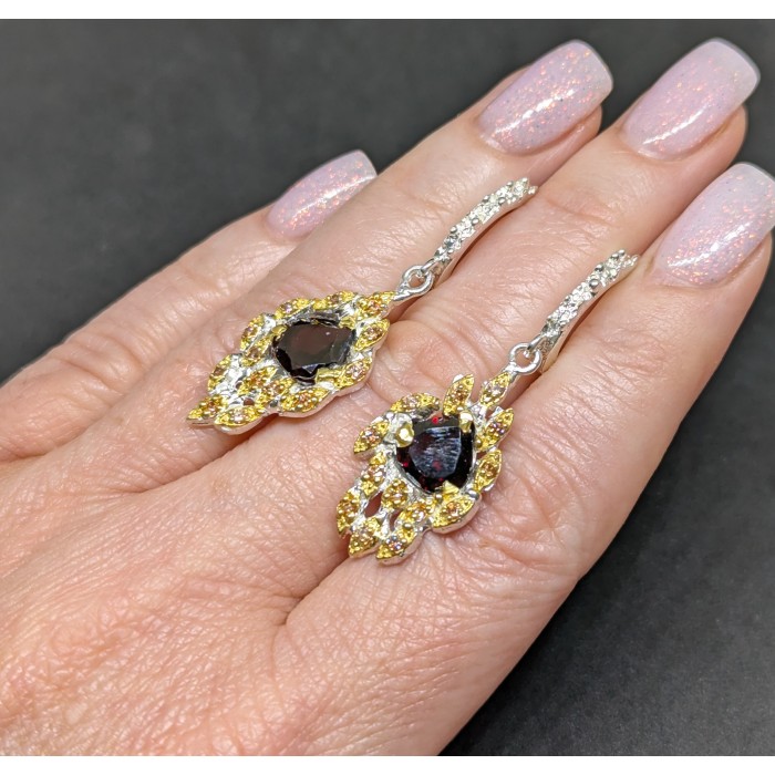 С5799Natural Rhodolite Garnet, Tourmaline 28.0 X 13.0 MM.Вага 5.3 гр.Срібло 925 проби покрите білим золотом.Розмір каміння - 5.0 X 2.5 TO 8.0 X 6.0 MM.Чистота - If To Vvs.Обробка - Unheated.Походження - Africa...