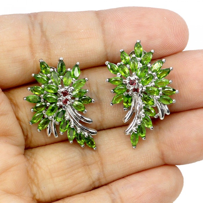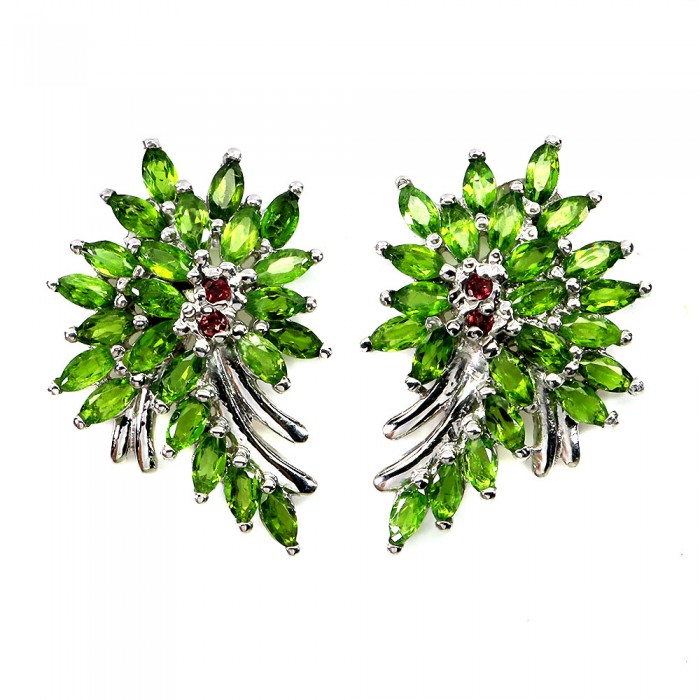 С5292Natural Mozambique Garnet, Black Spinel 14.0 X 12.0 MM.Вага 3.37 гр.Срібло 925 проби покрите білим золотом.Розмір каміння - 1.0 TO 7.0 X 5.0 MM.Чистота - If To Vvs.Обробка - Unheated.Походження - Africa...