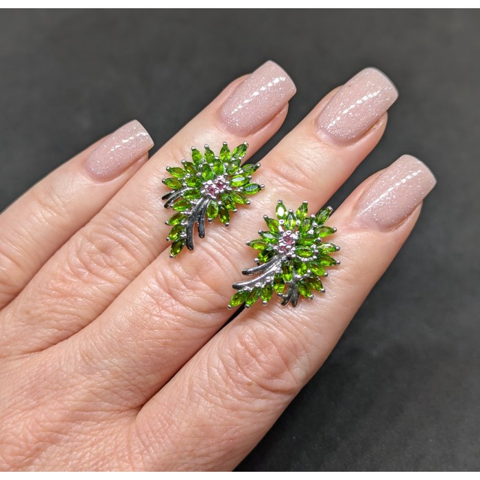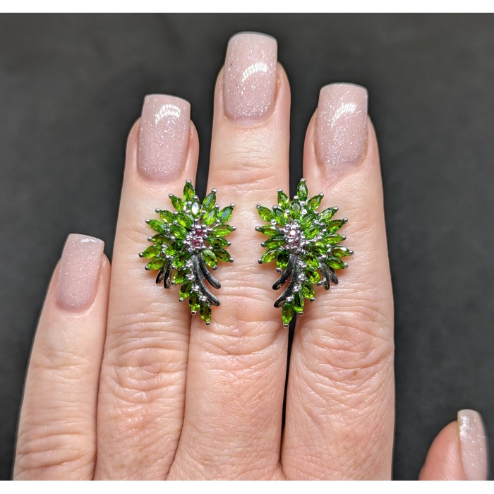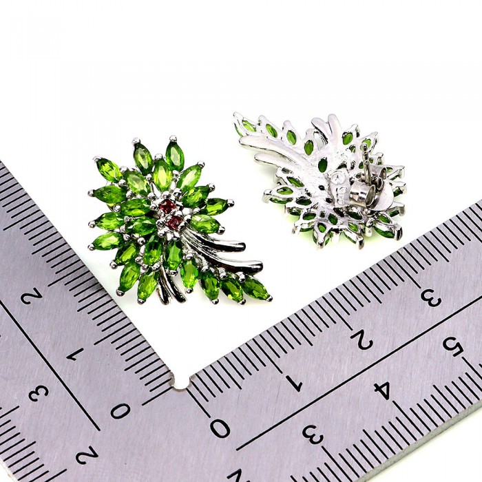 С5579Natural Emerald, Black Spinel 21.0 X 11.0 MM.Вага 3.43 гр.Срібло 925 проби покрите білим золотом.Розмір каміння - 1.0 TO 7.0 X 5.0 MM.Чистота - Transparent.Обробка - Unheated.Походження - Brazil...