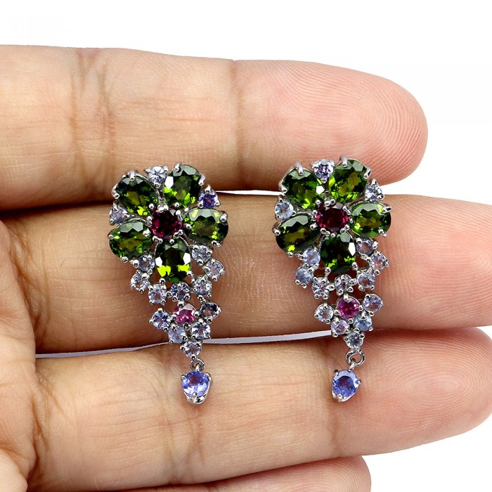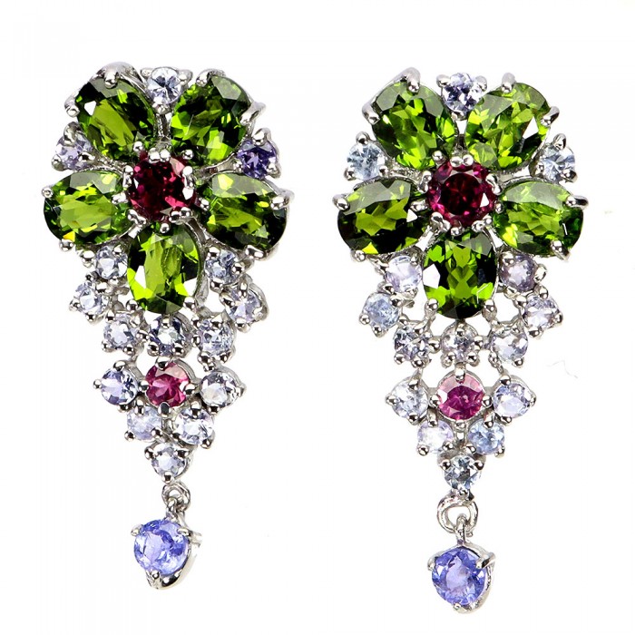 Natural Chrome Diopside, Rhodolite Garnet, Tanzanite 30.0 X 14.0 MM.