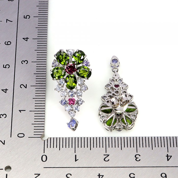 С5243Natural Tourmaline, Rhodolite Garnet, Sapphire 18.0 X 15.0 MM.Вага 4.81 гр.Срібло 925 проби покрите білим золотом.Розмір каміння - 1.0 TO 4.0 X 2.0 MM.Чистота - If To Vvs.Обробка - Unheated.Походження - Brazil...