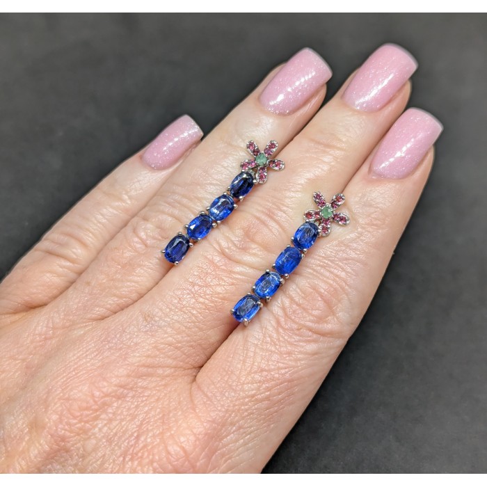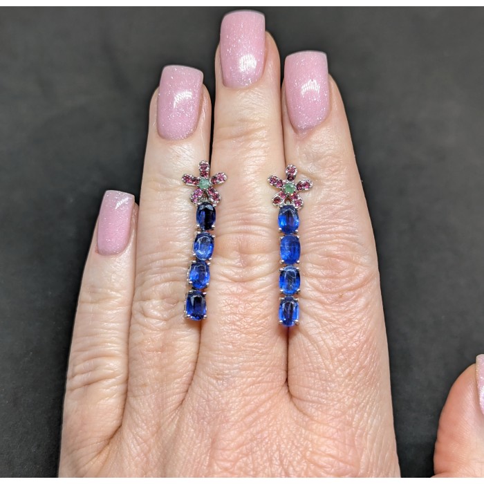 С5985Natural Chrome Diopside, Rhodolite Garnet, Tanzanite 30.0 X 14.0 MM.Вага 5.12 гр.Срібло 925 проби покрите білим золотом.Розмір каміння - 2.0 TO 5.0 X 3.0 MM.Чистота - If To Vvs.Обробка - Unheated.Походження - Africa...