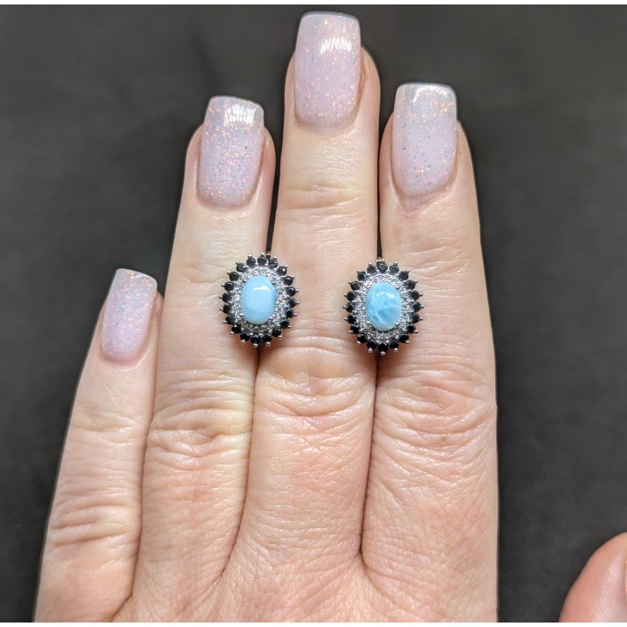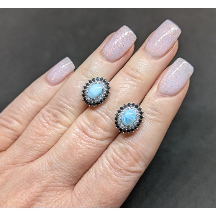 Natural Larimar, Black Spinel, Cz 14.0 X 12.0 MM.