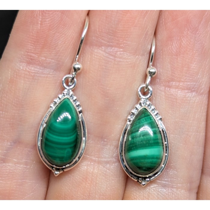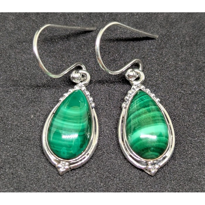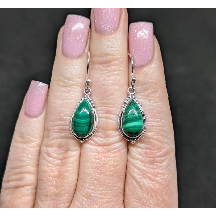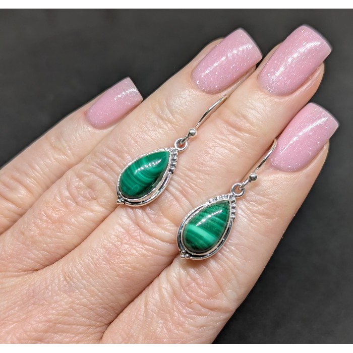 С5982Natural Malachite 35.0 X 11.0 MM.Вага 4.77 гр.Срібло 925 проби покрите білим золотом.Розмір каміння - 14.0 X 8.0 MM.Чистота - Opaque.Обробка - Unheated.Походження - Afghanistan...