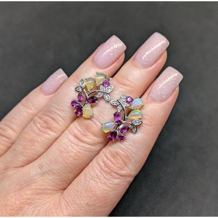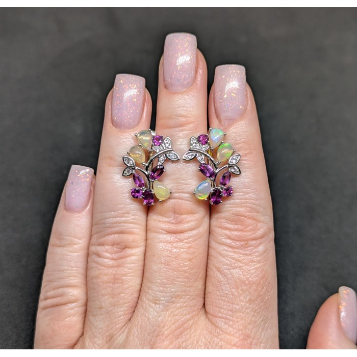 Natural Fire Opal, Rhodolite Garnet, Cz 22.0 X 16.0 MM.