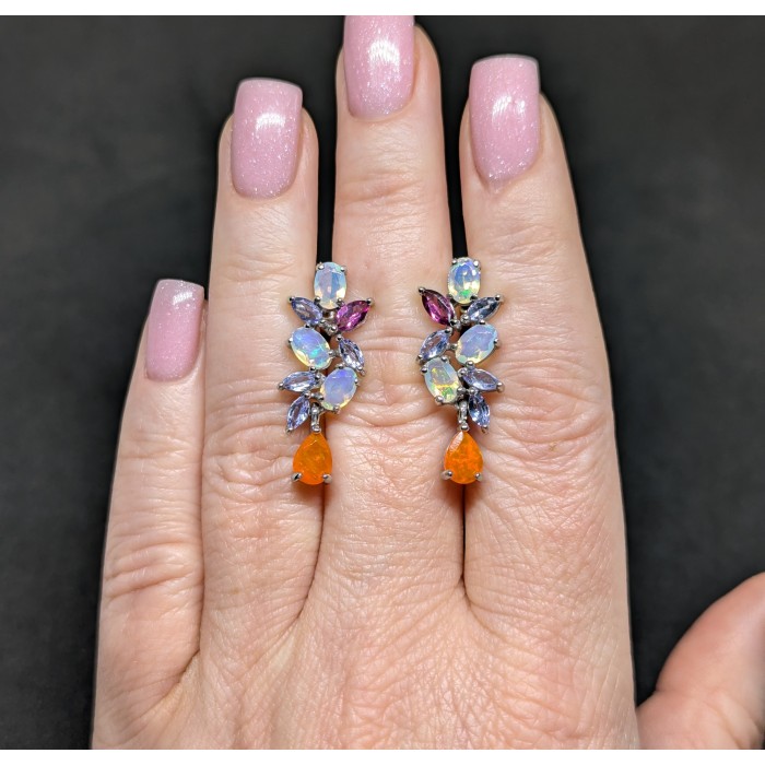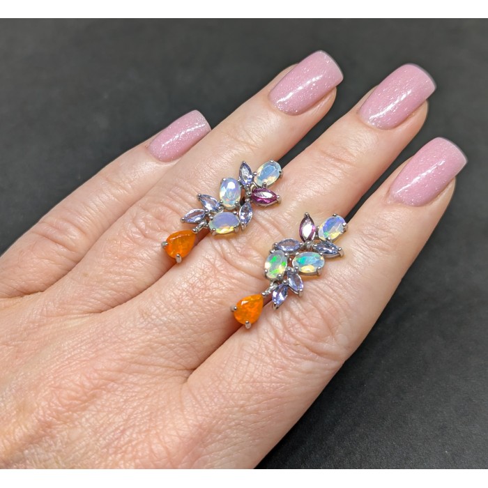 Natural Orange opal, Fire Opal, Rhodolite Garnet, Tanzanite 29.0 X 12.0 MM.