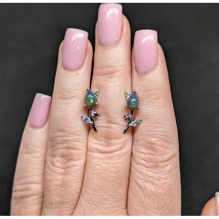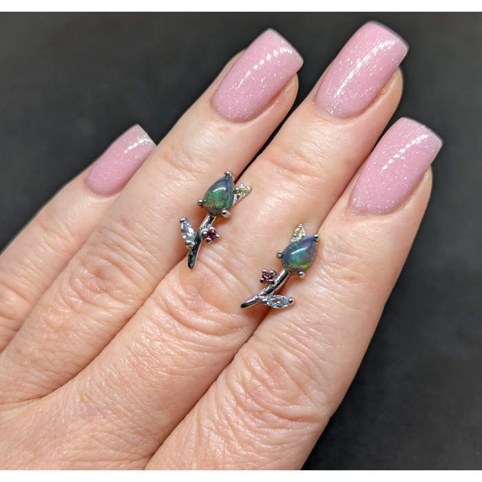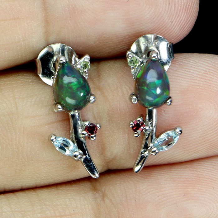 Natural Black Opal, Peridot, Rhodolite Garnet, Sky Blue Topaz 18.0 X 8.0 MM.