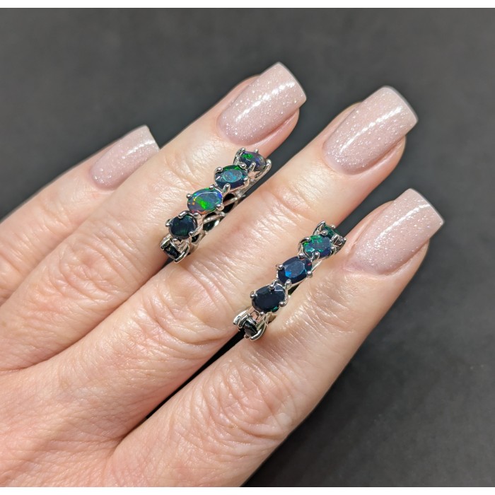 С4906Natural Fire Opal, Tanzanite, Cz 49.0 X 7.0 MM.Вага 8.15 гр.Срібло 925 проби покрите білим золотом.Розмір каміння - 4.0 X 3.0 TO 7.0 X 5.0 MM., CZ 1.0 TO 1.5 MM.Чистота - If.Обробка - Unheated.Походження - Ethiopia...