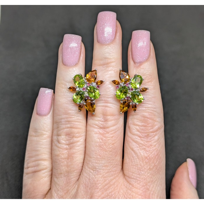 С5878Natural Amethyst Peridot 38.0 X 18.0 MM.Вага 7.75 гр.Срібло 925 проби покрите білим золотом.Розмір каміння - 1.0 TO 5.0 X 2.5 MM.Чистота - If To Vvs.Обробка - Unheated.Походження - Uruguay...