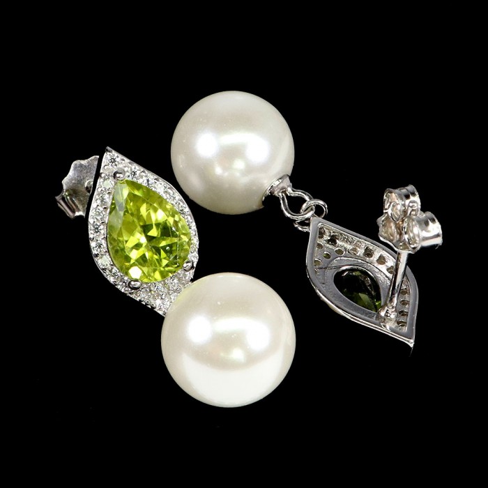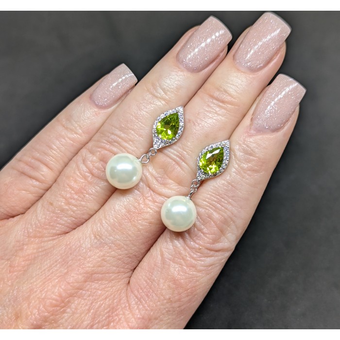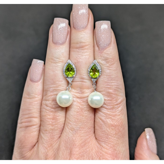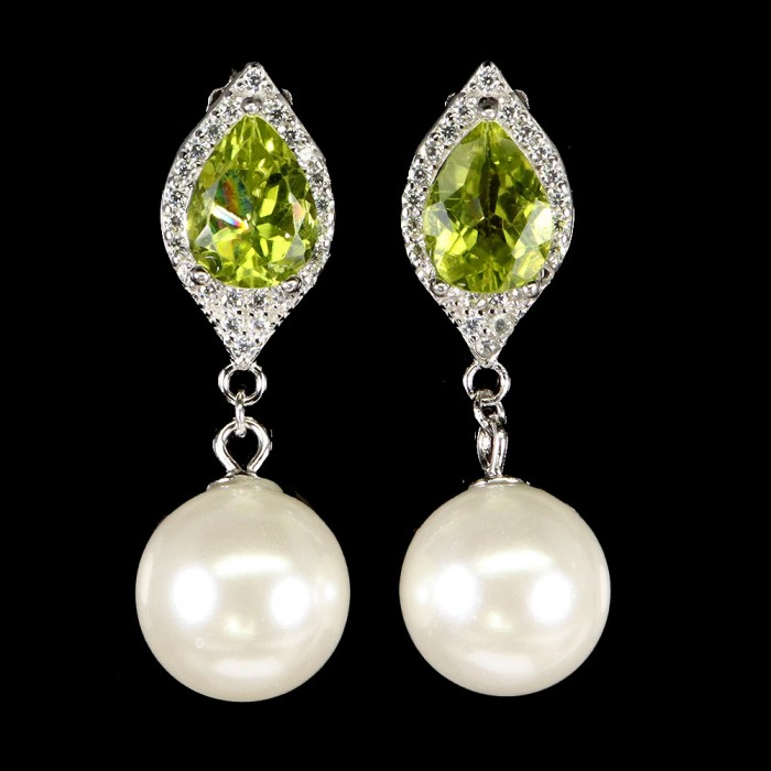 С2452Natural Peridot 37.0 X 15.0 MM.Вага 6.60 гр.Срібло 925 проби покрите білим золотом.Розмір каміння -5.0 X 2.5 TO 6.0 X 4.0 MM.Чистота - IF TO VVS.Обробка - UNHEATED.Походження - PAKISTAN...