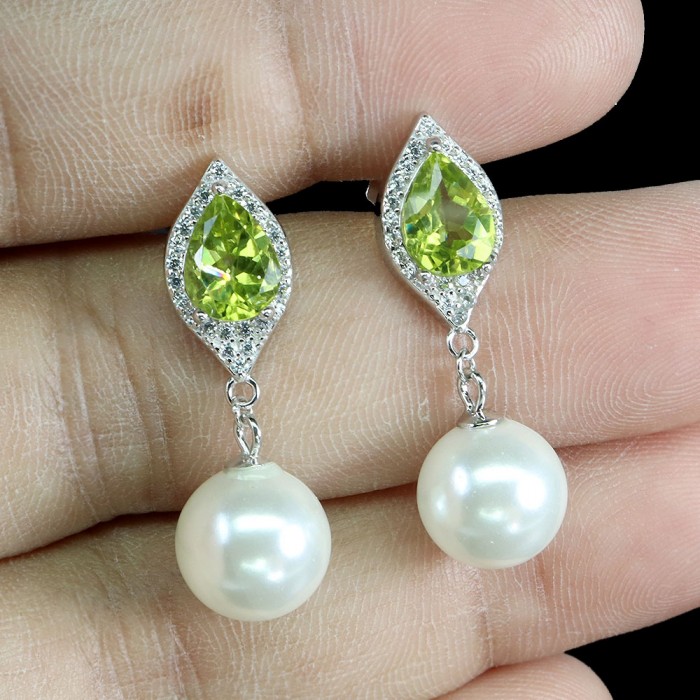 Natural Peridot, Mother Of Pearl, Cz 30.0 X 8.0 MM.