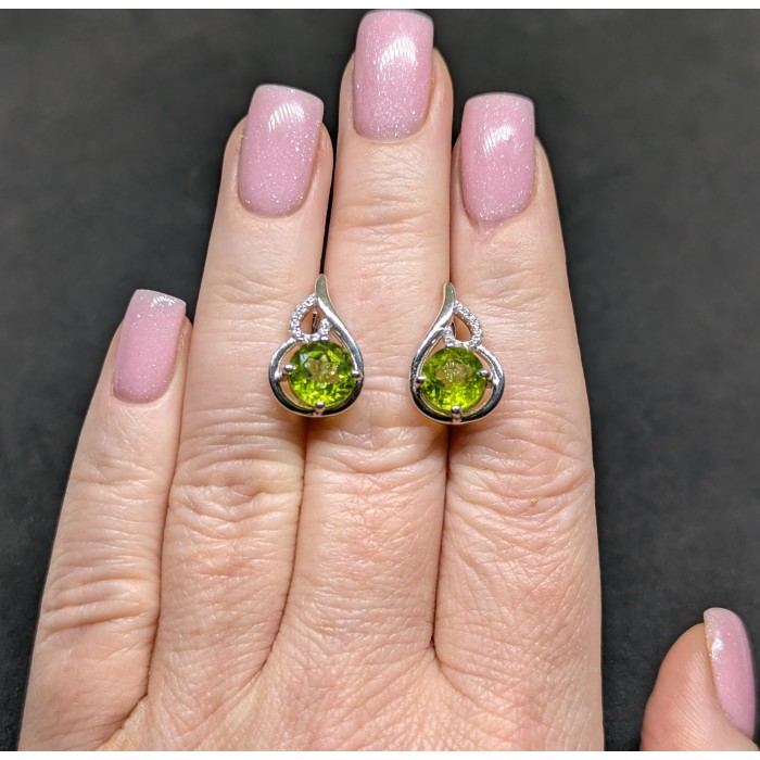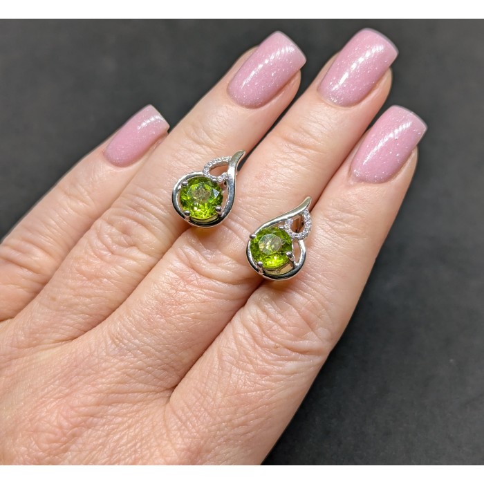 С3024Natural Chrome Diopside Cz 8.0 X 17.0 MM.Вага 5.88 гр.Срібло 925 проби покрите білим золотом.Розмір каміння - 4.0 X 3.0 MM., CZ 1.5 MM.Чистота - IF TO VVS.Обробка - UNHEATED.Походження - RUSSIA...