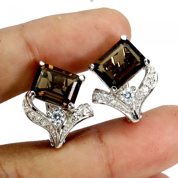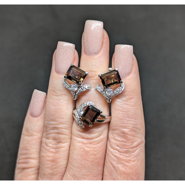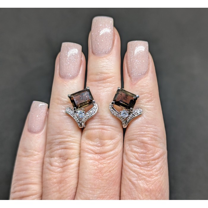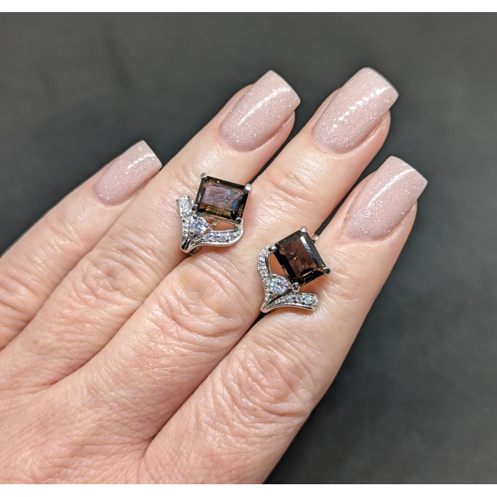 Сережки. Натуральний раух топаз. Срібло 925. С5846