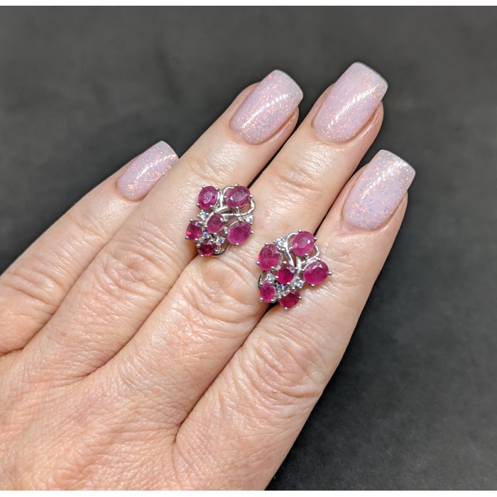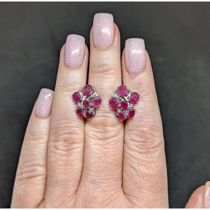 С5463Natural Ruby Cz 11.0 X 9.0 MM.Вага 4.06 гр.Срібло 925 проби покрите білим золотом.Розмір каміння - 1.0 TO 8.0 X 6.0 MM.Чистота - Transparent.Обробка - Heated.Походження - Madagascar...