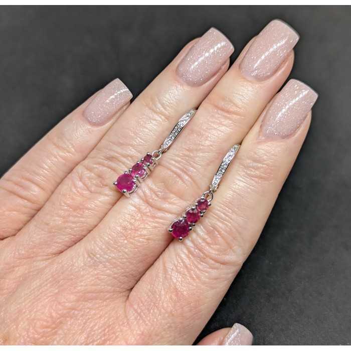 С4949Natural Red Ruby & White Zircon 7.5 x 12.5 mm.Вага 4,09 гр.Срібло 925 проби покрите білим золотом.Розмір каміння - 5.0 - 1.2 mm.Чистота - TRANSPAREN.Обробка - HEATED.Походження - MADAGASCAR...