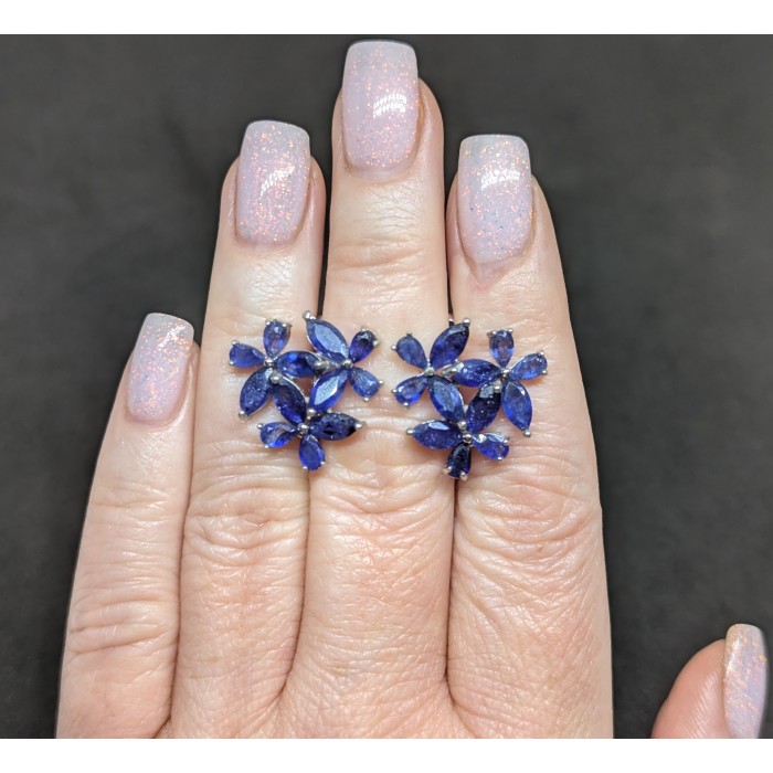 С4845Natural Tanzanite Emerald 23.0 X 19.0 MM.Вага 8.46 гр.Срібло 925 проби покрите білим золотом.Розмір каміння - 1.0 TO 4.0 X 2.0 MM.Чистота - If To Vvs.Обробка - Unheated.Походження - Tanzania - Africa...
