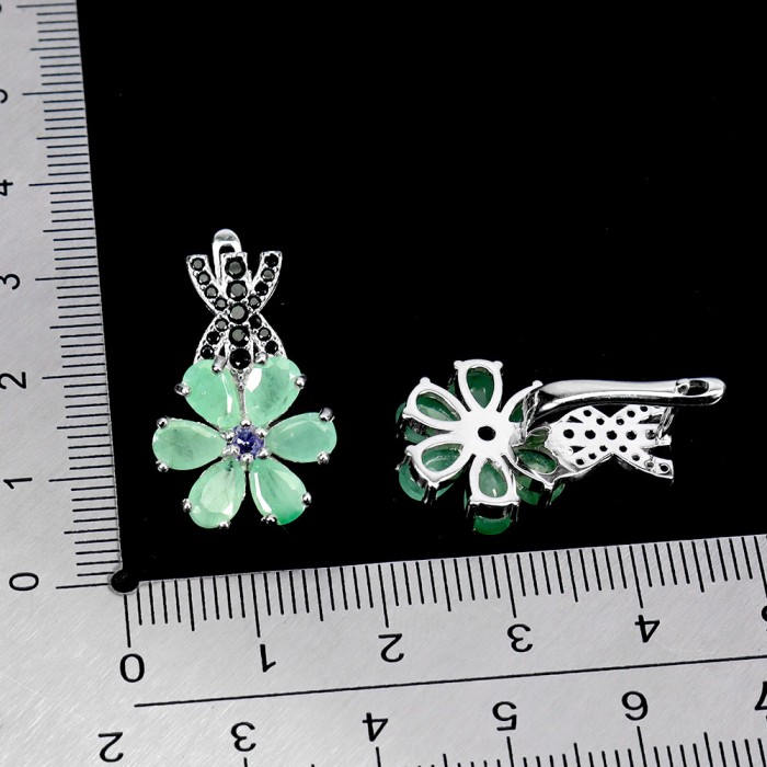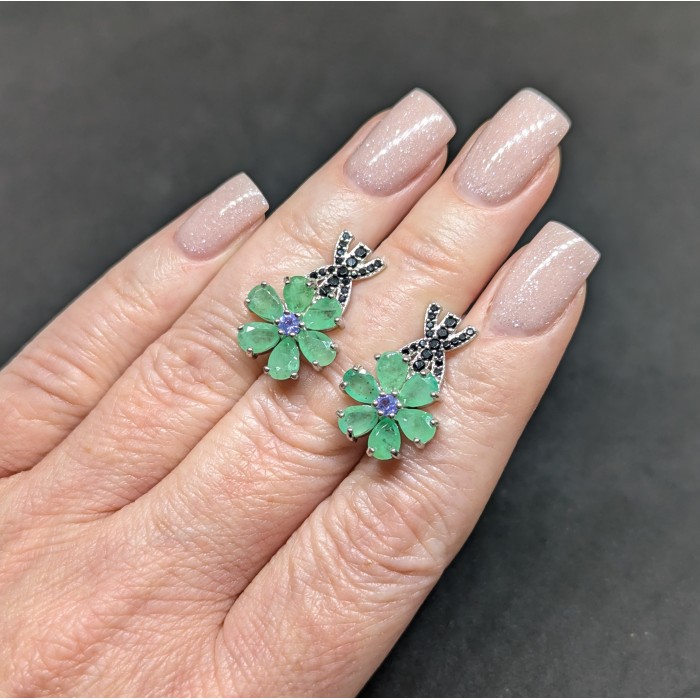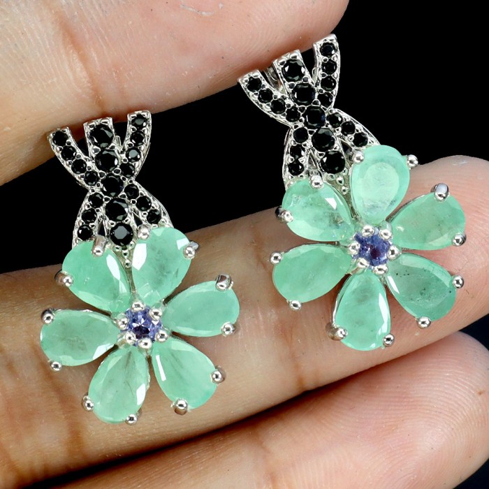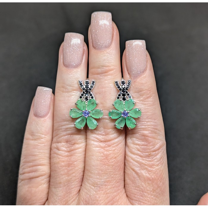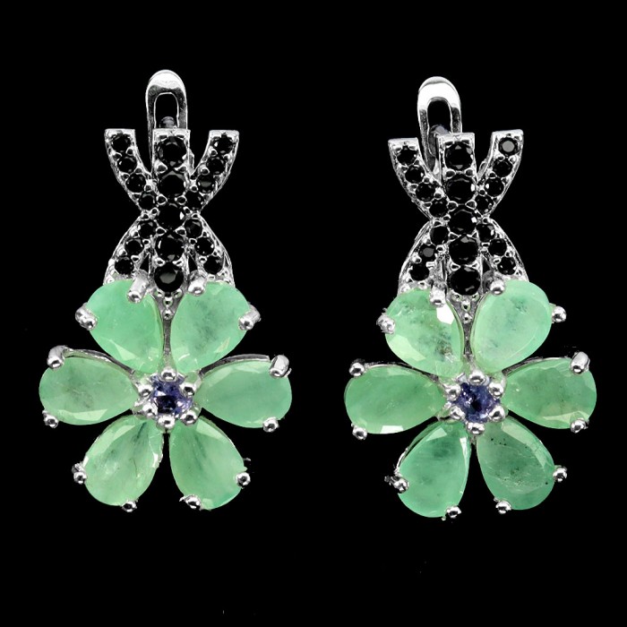 С5579Natural Emerald, Black Spinel 21.0 X 11.0 MM.Вага 3.43 гр.Срібло 925 проби покрите білим золотом.Розмір каміння - 1.0 TO 7.0 X 5.0 MM.Чистота - Transparent.Обробка - Unheated.Походження - Brazil...