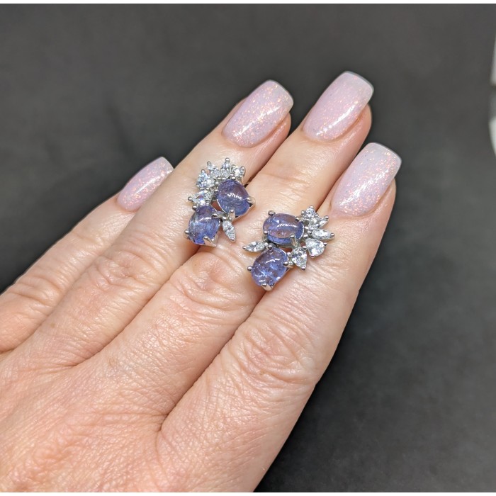 Natural Blue Tanzanite & Cubic Zirconia 13.2 x 12.0 mm.