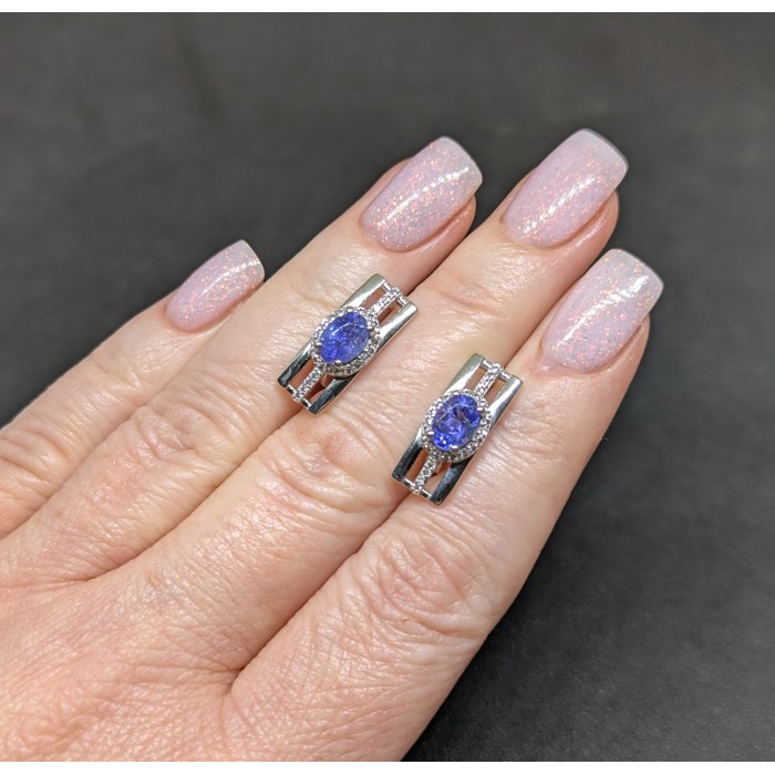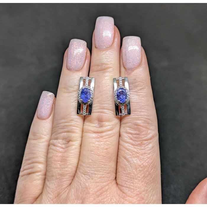 Natural Blue Tanzanite & Cubic Zirconia 7.5 x 18.7 mm.