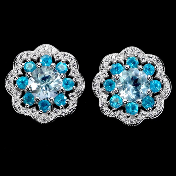 Natural Sky Blue Topaz, Apatite, Cz 17.0 X 16.0 MM.
