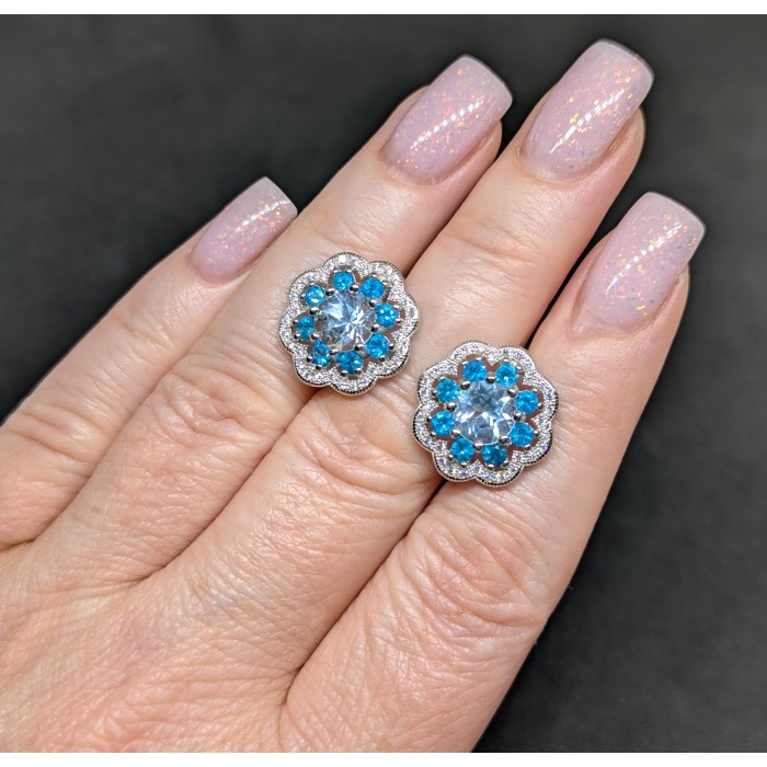 С5928Natural Sky Blue - White Topaz & Zircon 10.2 x 50.0 mm.Вага 8,76 гр.Срібло 925 проби покрите жовтим золотом.Розмір каміння - 7.0 - 1.1 mm.Чистота - If To Vvs.Обробка - Irradiated.Походження - Africa...