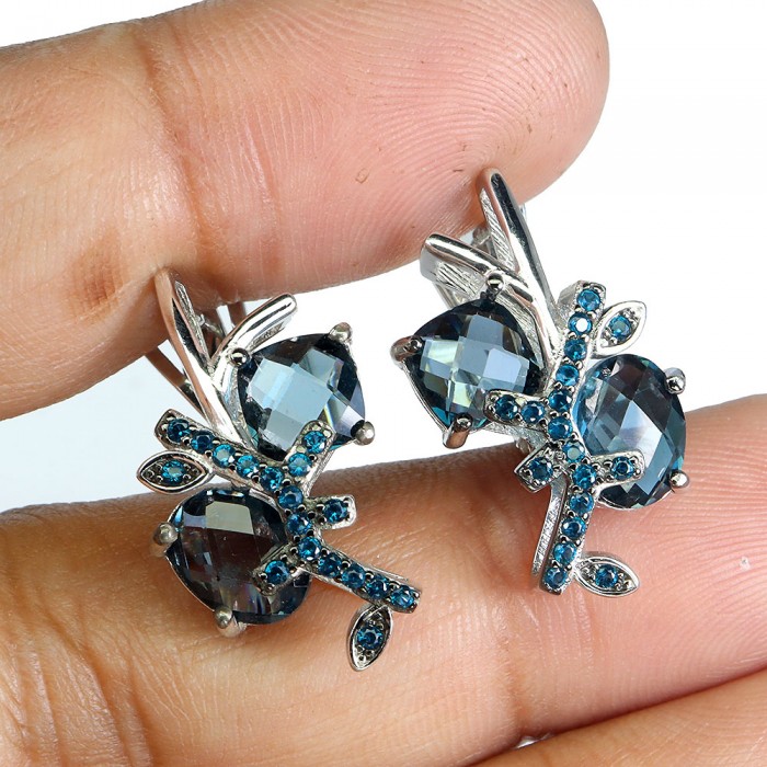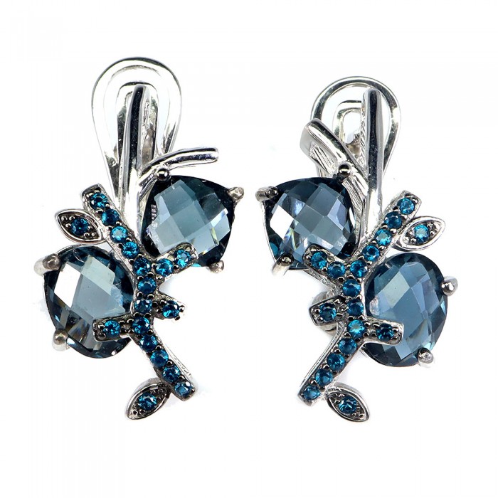 Сережки. Натуральний топаз лондон. Срібло 925. С5848