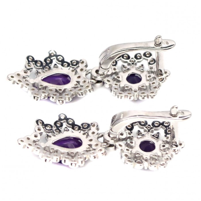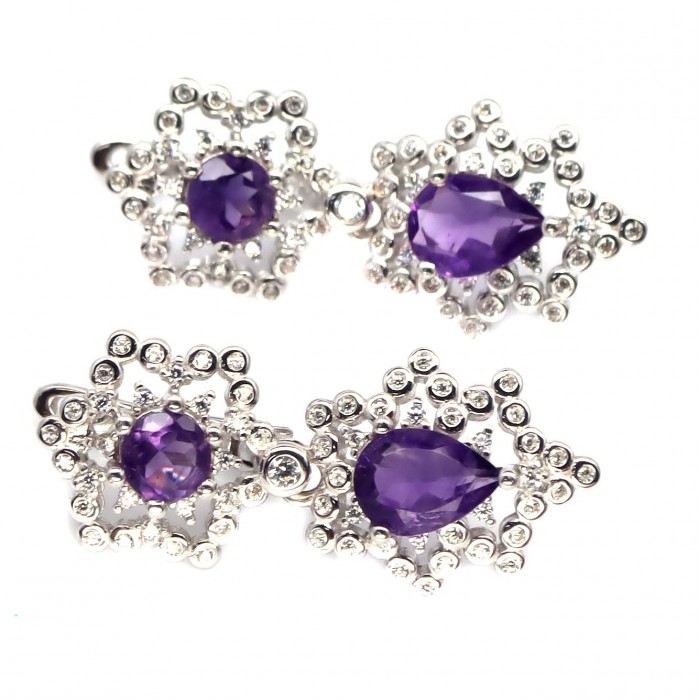 С3978Natural Purple Amethyst Cz 18.0 X 16.0 MM.Вага 5.88 гр.Срібло 925 проби покрите білим золотом.Розмір каміння - 4.0 X 3.0 TO 7.0 X 5.0 MM., CZ 1.0 MM.Чистота - If To Vvs.Обробка - Unheated.Походження - Uruguay...