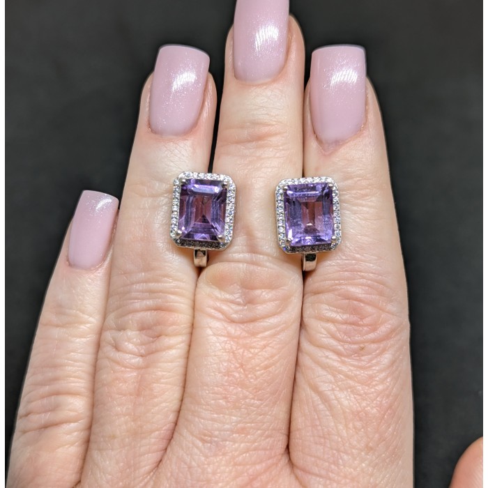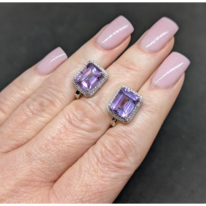 С6140Natural Purple Amethyst 10.2 x 23.0 mm.Вага 5,81 гр.Срібло 925 проби покрите білим і жовтим золотом.Розмір каміння - 8.0 x 10.0 - 2.0 mm.Чистота - If To Vvs.Обробка - Unheated.Походження - Brazil...