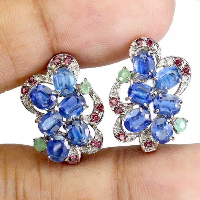 Natural Kyanite, Emerald, Rhodolite Garnet 20.0 X 15.0 MM.