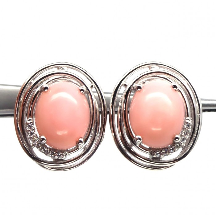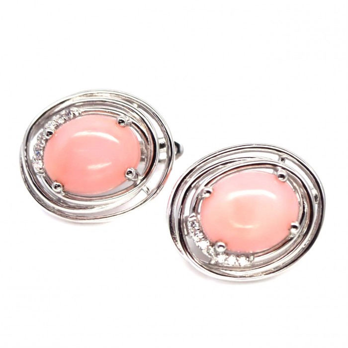Natural Pink Opal & White Zircon 14.0 x 16.5 mm.