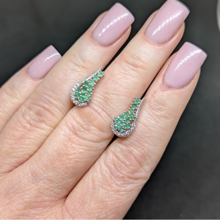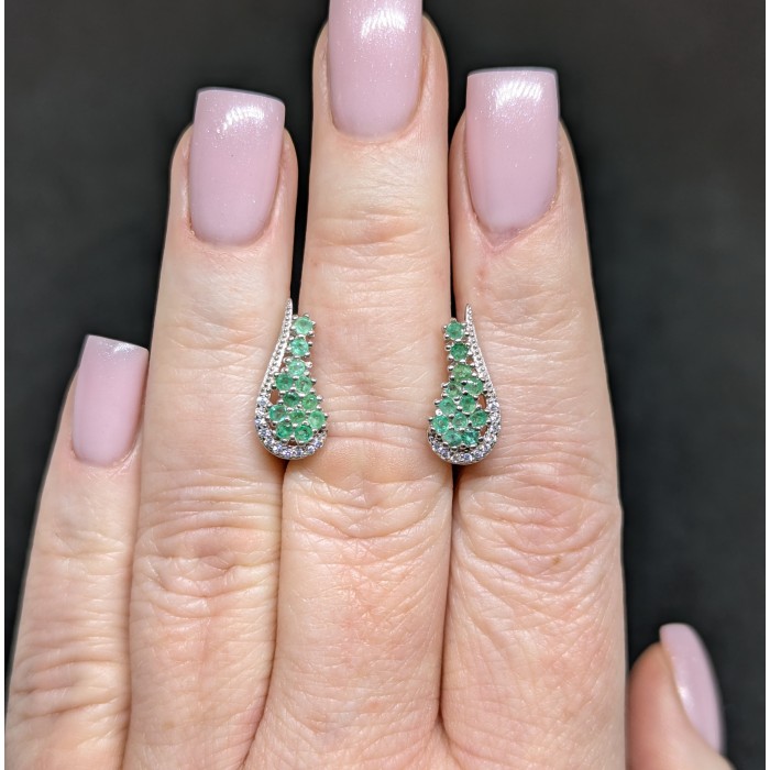 С6499Natural Emerald 17.0 X 8.0 MM.Вага 3.34 гр.Срібло 925 проби покрите білим золотом.Розмір каміння - 2.0 MM., CZ 1.0 MM. Чистота - Transparent.Обробка - Unheated.Походження - Brazil...
