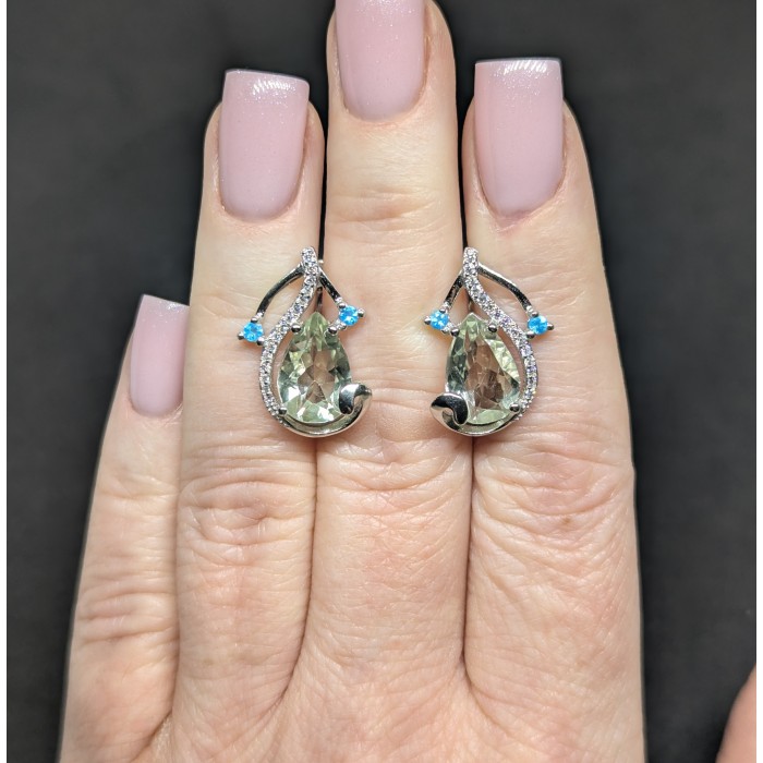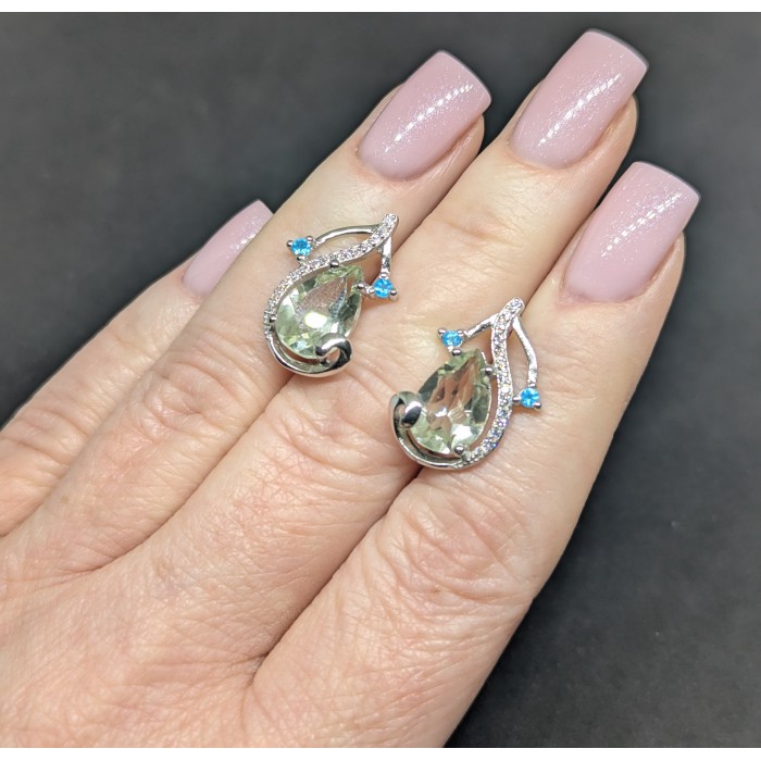 Natural Green Amethyst, Apatite, Cz 21.0 X 14.0 MM.