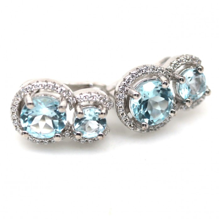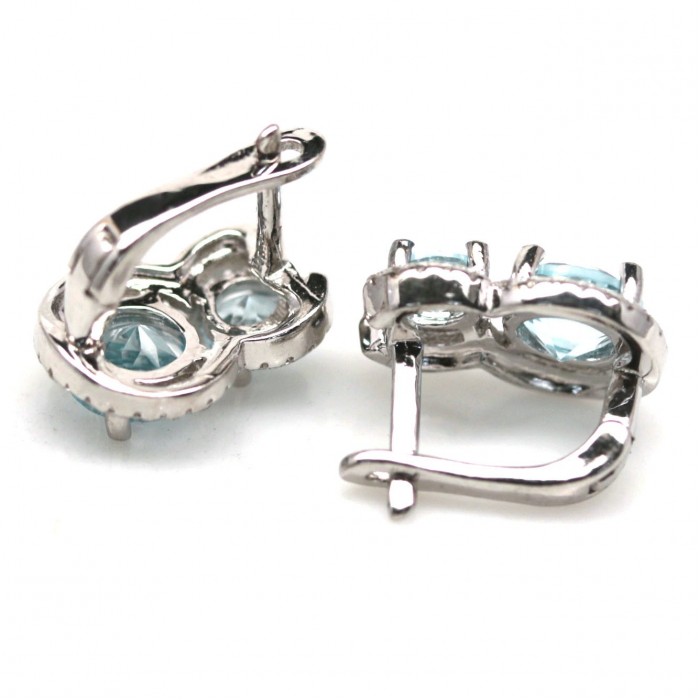 С6138Natural Blue Topaz & Cubic Zirconia 10.9 x 15.5 mm.Вага 4,6 гр.Срібло 925 проби покрите білим золотом.Розмір каміння - 7 x 10 - 1.5 mm.Чистота - If.Обробка - Irradiated.Походження - Africa...