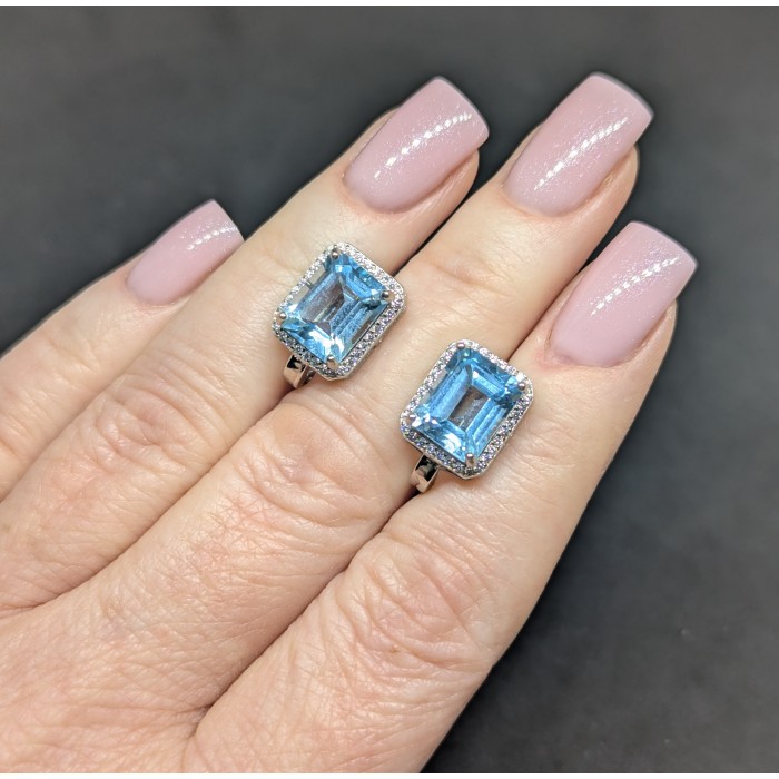 С6514Natural Sky Blue Topaz 10.0 X 8.0 MM.Вага 4.27 гр.Срібло 925 проби покрите білим золотом.Розмір каміння - 10.0 X 8.0 MM.Чистота - If.Обробка - Irradiated.Походження - Africa...
