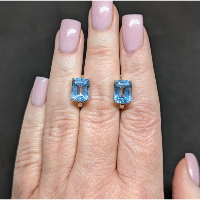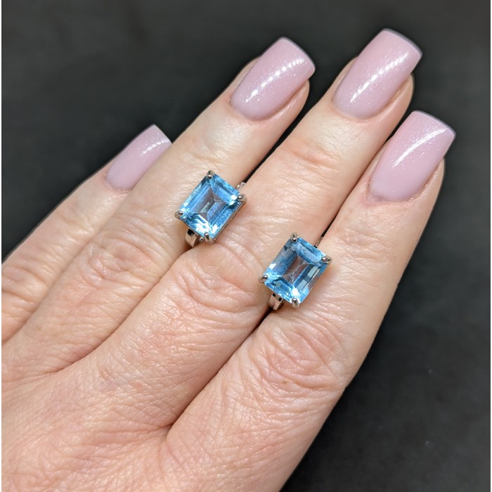 С6502Natural Sky Blue Topaz Cz 13.0 X 10.0 MM.Вага 5.55 гр.Срібло 925 проби покрите білим золотом.Розмір каміння - 10.0 X 8.0 MM., CZ 1.0 MM.Чистота - If.Обробка - Irradiated.Походження - Africa...