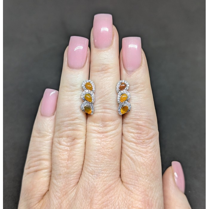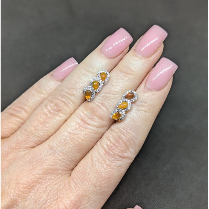 Natural Orange Fire Opla & White Cubic Zirconia 6.6 x 17.4 mm.