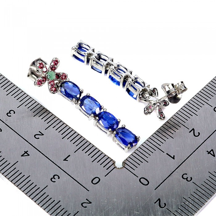 С6012Natural Fancy Color Tourmaline & Cubic Zirconia 9.8 x 25.0 mm.Вага 4,49 гр.Срібло 925 проби покрите білим золотом.Розмір каміння - 6.0 x 8.0 - 1.5 x 3.0 mm.Чистота - IF TO VVS.Обробка - UNHEATED.Походження - BRAZIL...