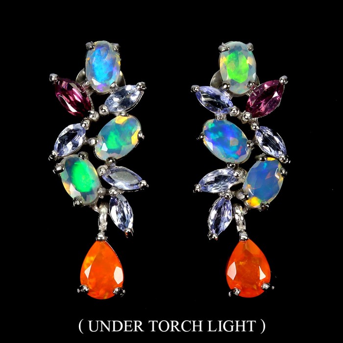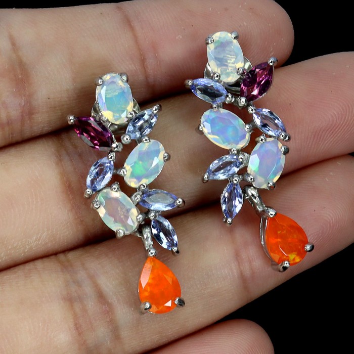 Natural Orange opal, Fire Opal, Rhodolite Garnet, Tanzanite 29.0 X 12.0 MM.