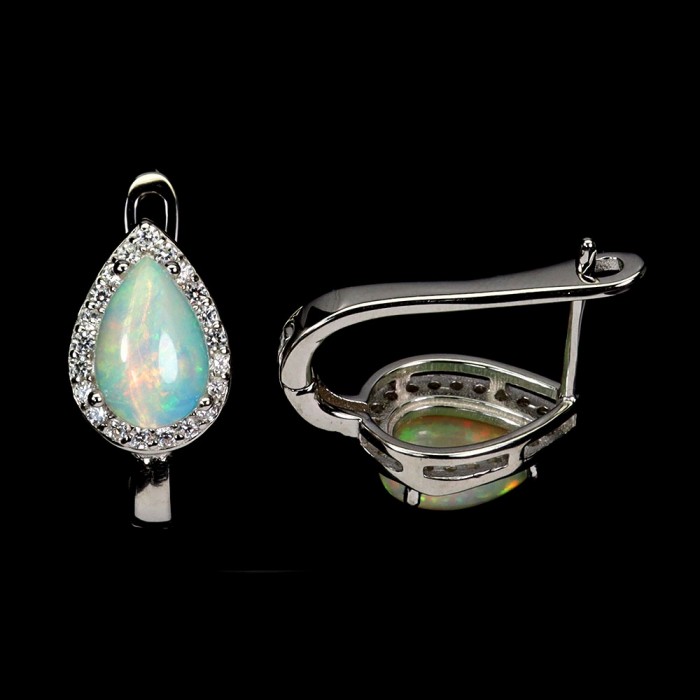 С6088Natural Fire Opal, White Topaz 15.0 X 7.0 MM.Вага 3.33 гр.Срібло 925 проби покрите білим золотом.Розмір каміння - 1.0 TO 9.0 X 7.0 MM.Чистота - If.Обробка - Unheated.Походження - Ethiopia...