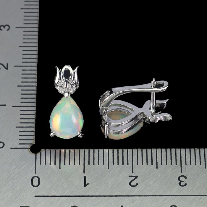С6092Natural Fire Opal Cz 17.0 X 9.0 MM.Вага 3.61 гр.Срібло 925 проби покрите білим золотом.Розмір каміння - 9.0 X 6.0 MM., CZ 1.5 MM.Чистота - If.Обробка - Unheated.Походження - Ethiopia...