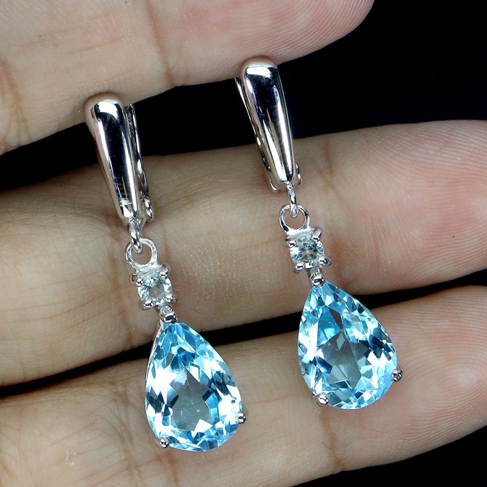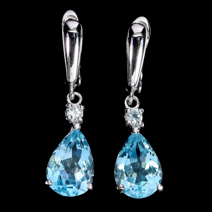 С5997Natural Sky Blue Topaz 10.0 X 8.0 MM.Вага 4.36 гр.Срібло 925 проби покрите білим золотом.Розмір каміння - 10.0 X 8.0 MM. Чистота - If To Vvs.Обробка - Irradiated.Походження - Africa...