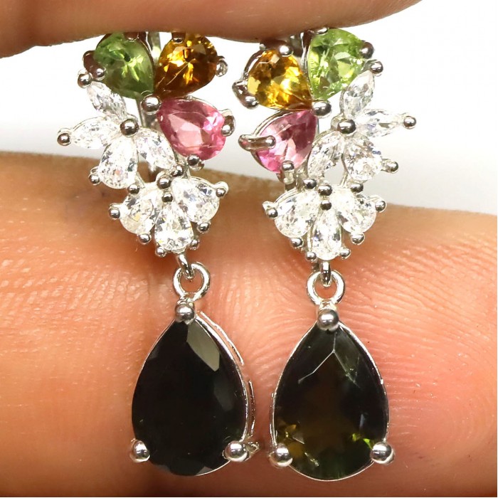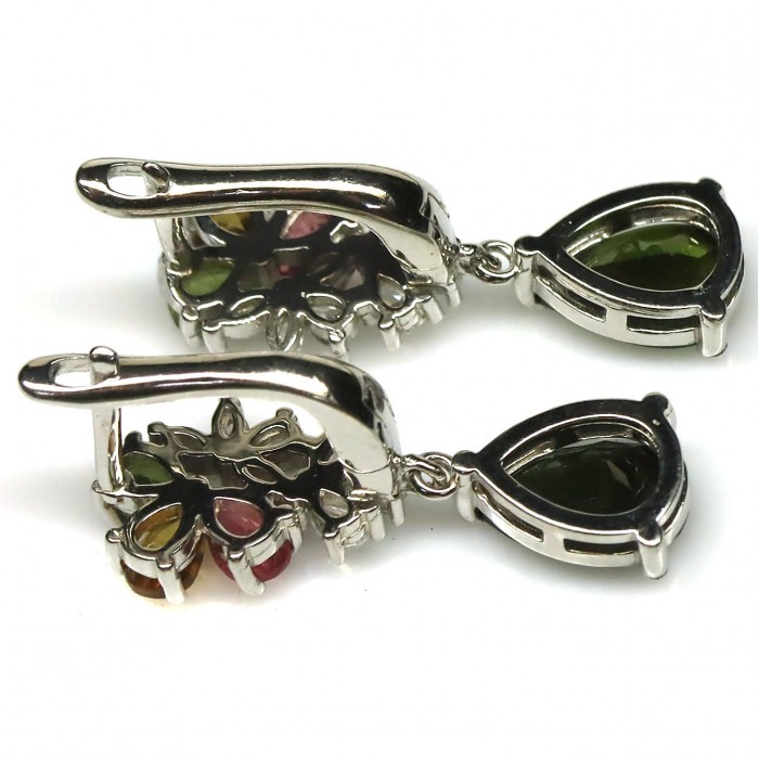 С6016Natural Golden Yellow Citrine, Tourmaline & Cubic Zirconia 9.8 x 25.0 mm.Вага 4.4 гр.Срібло 925 проби покрите білим золотом.Розмір каміння - 6.0 x 9.0 - 1.5 x 3.0 mm.Чистота - If To Vvs.Обробка - Unheated.Походження - Brazil...