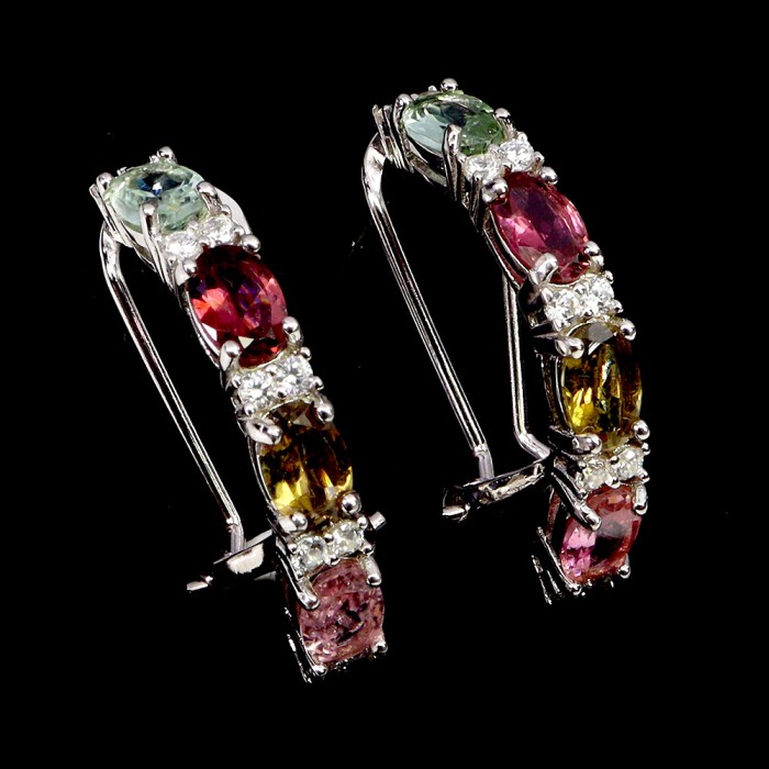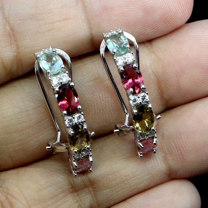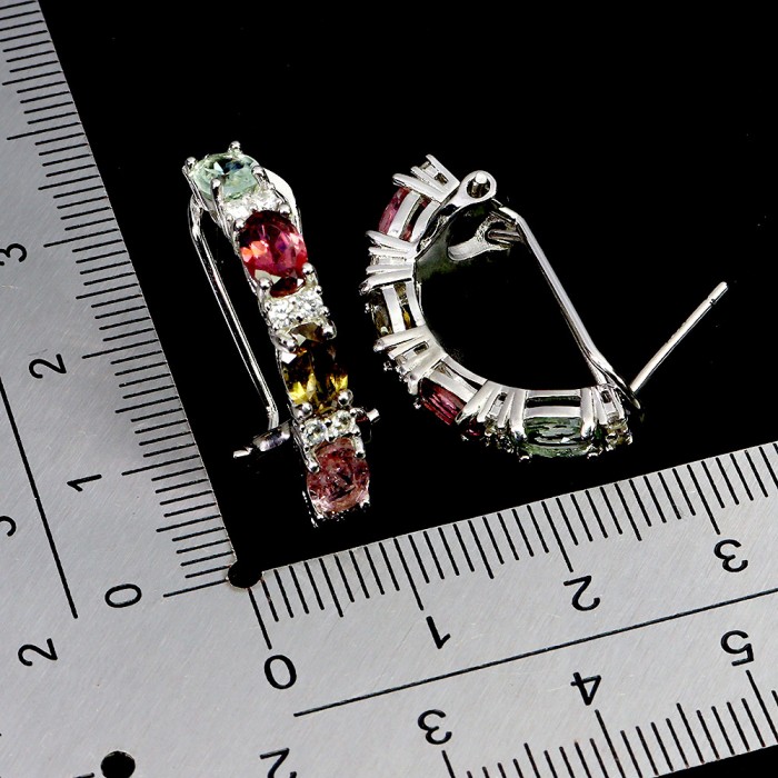 С6087Natural Tourmaline Cz 24.0 X 4.0 MM.Вага 4.95 гр.Срібло 925 проби покрите білим золотом.Розмір каміння - 6.0 X 4.0 MM., CZ 2.0 MM.Чистота - If To Vvs.Обробка - Unheated.Походження - Brazil...
