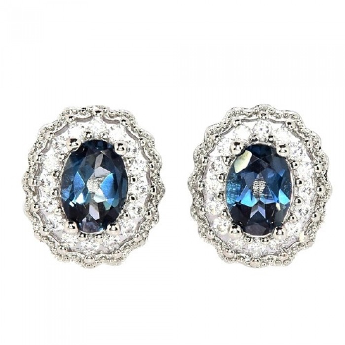 NATURAL AAA LONDON BLUE TOPAZ & WHITE CZ 11 x 12 mm.