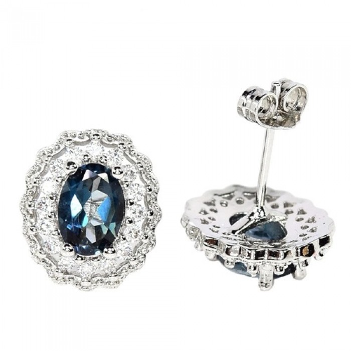 П6809NATURAL AAA LONDON BLUE TOPAZ & WHITE CZ 455 Х 405 Х 11 Х 21 mm.Вага 3.82 гр.Срібло 925 проби покрите білим золотом.Розмір каміння - 8 x 6 mm.Чистота - IF TO VVS.Обробка - IRRADIATED.Походження - AFRICA...
