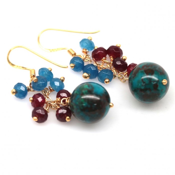 Natural Blue Turquoise, Apatite & Ruby 10.7 x 43 mm.